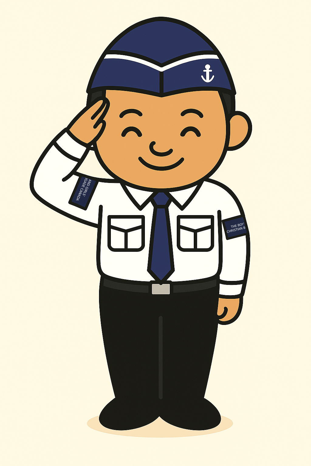 It consists of a white shirt, navy blue tie, black pants and black footwear as part of their formal uniform. On casual occasions brigaders will wear royal blue polo and black pants. Pictures below illustrate the positions of all badges and accessories for this age group.
